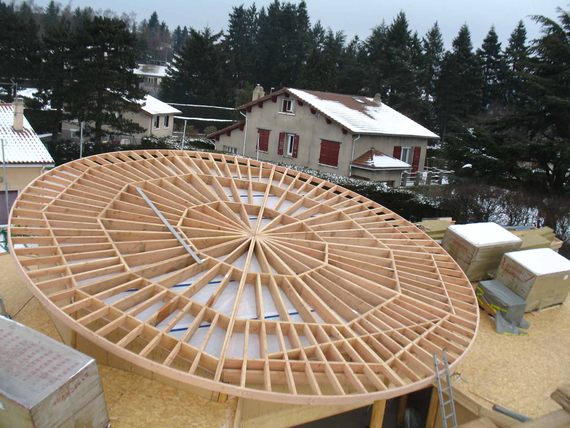 Maisons à ossature bois, charpentes traditionnelles ou industrialisées, couverture, zinguerie et fenêtres de toit : chaque réalisation est dimensionnée avec précision et exécutée dans le respect des normes en vigueur.